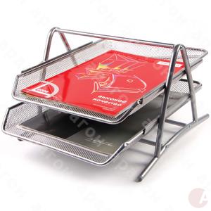 Лоток для документов горизонтальный металлический. На 2 отдела. Цвет – серебро.
