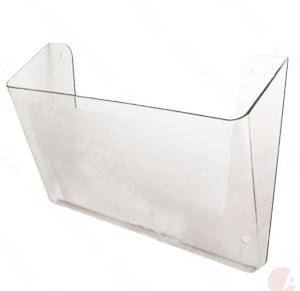 Лоток для документов настенный пластиковый. Одно отделение. При необходимости лотки скрепляются между собой. Поставляются с комплектом креплений к стене. Цвет – прозрачный. Размер: 320х230х80 мм.