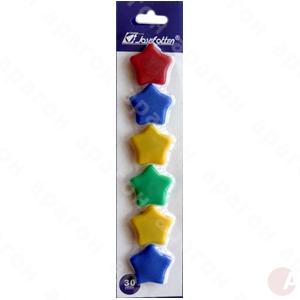 Магниты для досок "Звездочки". Диаметр – 30 мм. В упаковке 6 шт. Цвет - ассорти.