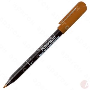 Маркер «Permanent» для надписей на разных поверхностях: коже, древесине, резине, пластмассе, стекле, металле. Чернила на спиртовой основе, водостойкие, устойчивы к погодным условиям, с нейтральным запахом. Ширина следа – 1 мм. Цвет чернил – коричневый.