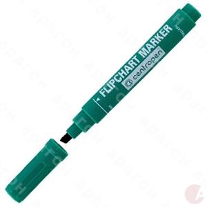 Маркер «Flipchart» для надписей на бумаге для флипчартов и другой бумаге. Чернила на водной основе, не расплываются и не просачиваются сквозь бумагу, практически без запаха. Не высыхает без колпачка в течение недели. Клиновидный пишущий узел. Ширина следа – 1-4,6 мм. Цвет чернил – зеленый.