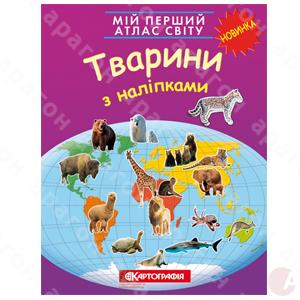 Мій перший атлас світу. Тварини з наліпками. Атлас «ТВАРИНИ» ілюструє розселення різних звірів по світу. На сторінках атласу подано багато цікавих фактів про середовище існування, характер та звички різноманітних тварин. Кольорові наліпки допоможуть швидко запам’ятати, на яких материках живуть наші улюбленці в дикій природі.
