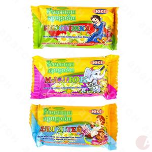 Туалетное мыло детское рецепты природы представлено тремя видами: «Белоснежка», «Малыш», «Для детей». Минимальное количество отдушки и отсутствуют красители, которые могут вызывать аллергические реакции у детей. Наличие в составе экстрактов целебных растений ромашки и череды обеспечивает нежный уход за кожей. Масса - 70 г.