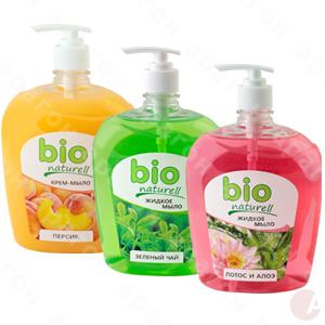 Мыло жидкое Bio. Для очистки и ухода за кожей рук и тела. Содержит глицерин. Ассорти ароматов. Объем - 1000 мл.