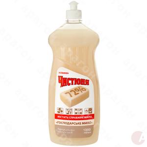 Жидкое хозяйственное мыло "Чистюня" – средство близкое по своим качествам к знакомому с детства кусковому хозяйственному мылу. Эффективно очищает сильно загрязненные поверхности (двери, пол, раковины, кафель, кухонные принадлежности и т.д.). Подходит для ручной и машинной стирки. Объем - 1л.