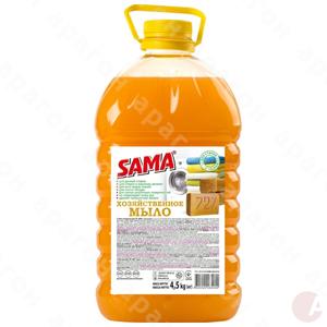 Жидкое хозяйственное мыло Sama является аналогом привычного и знакомого нам с детства кускового хозяйственного мыла. Качественно стирает в горячей и холодной воде, создает пышную устойчивую пену, экономно расходуется, прекрасно отстирывает загрязнения. Подходит как для ручной стирки, так и для использования в стиральной машине автомат. Для предотвращения образования накипи на элементах стиральной машины предусмотрен компонент, способствует разрушению кальциевых отложений. Может использоваться для стирки в воде любой жесткости. Вес - 4,5 кг.