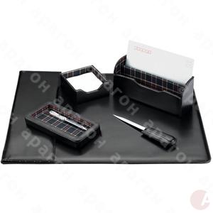 Набор настольный для руководителя на 5 предметов: подкладка для письма, подставка для почты, подставка для календаря и ручки, подставка для карандашей, канцелярский нож. Материал – искусственная кожа.