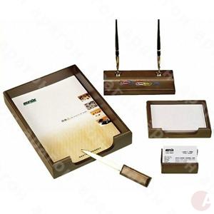 Набор настольный 5-ти предметный из натурального дерева: горизонтальный лоток для документов; подставка с двумя шариковыми ручками; бокс с бумагой для записей: 100х150мм; нож для вскрытия корреспонденции; подставка для визиток.