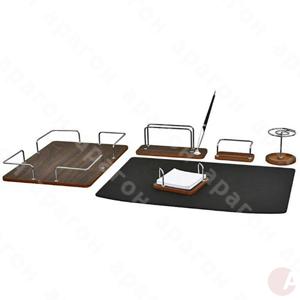 Набор настольный 6-ти предметный Wire из натурального дерева и металла: гибкая подкладка для письма: 670х425х9мм; горизонтальный лоток для документов; подставка с шариковой ручкой и отделением для корреспонденции; подставка для карандашей и ручек; бокс с бумагой для записей: 100х100мм; подставка для визиток.
