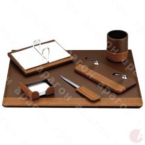 Набор настольный 7-ми предметный из натурального дерева: подкладка для письма, подставка с двумя ручками, подставка для карандашей, пенал с бумагой для записей, нож для корреспонденции, диспенсер для скрепок с магнитом, подставка для визиток.