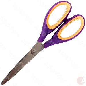 Ножницы офисные с пластиковыми рукоятками и эргономичными резиновыми вставками. Толщина металла 2 мм. Зеркальная полировка лезвий. Крепление лезвий – стальной винт. Длина – 20 см. Картонная упаковка сподвесом.