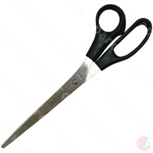 Ножницы с пластиковыми рукоятками. Лезвия стальные,полированы под зеркало. Крепления лезвий– стальной винт. Длина – 25 см.