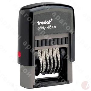 Нумератор серии «Printy Line» пластиковый шестиразрядный. Сменные штемпельные подушки 6/4911. Регулировка даты по высоте текстовой пластины. Высота шрифта – 4 мм.
