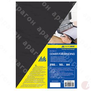 Обложка с фактурной поверхность «под кожу» BUROMAX черного цвета для переплета и профессионального оформления документов. Обеспечивает защиту от механических повреждений (потертости, загрязнения). Плотность - 250 г/м2. Предназначена для переплета формата А4. В упаковке 50 шт.