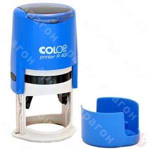 Оснастка автоматическая R40 серии «Printer» для круглой печати. Пластиковый серебристый корпус. Нижняя крышка блокирует корпус в сложенном компактном виде, защищает клише. Сменная синяя подушка E/R40. Сменная двухцветная подушка E/R40/2. Диаметр площадки – 40 мм.