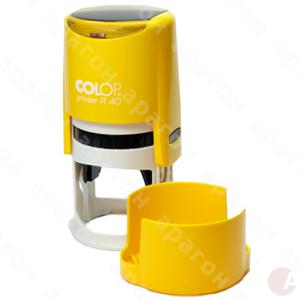 Оснастка автоматическая R40 серии «Printer» для круглой печати. Пластиковый желтый корпус. Нижняя крышка блокирует корпус в сложенном компактном виде, защищает клише. Сменная синяя подушка E/R40. Сменная двухцветная подушка E/R40/2. Диаметр площадки – 40 мм.