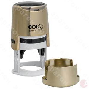 Оснастка автоматическая R40 серии «Printer» для круглой печати. Пластиковый золотистый корпус. Нижняя крышка блокирует корпус в сложенном компактном виде, защищает клише. Сменная синяя подушка E/R40. Сменная двухцветная подушка E/R40/2. Диаметр площадки – 40 мм.
