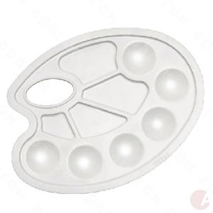 Палитра для смешивания красок. Пластиковая овальная белая на 10 отделений.