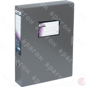 Папка-бокс на липучке пластиковая. Сменный индекс на торце. Прозрачный карман со сменной этикеткой на обложке. Толщина корешка - 6 см. Толщина пластика – 1 мм. Цвет – серый.