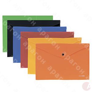 Папка на кнопке непрозрачная. Толщина пластика – 180 мкм. Фактура – помаранч. Формат - А4. Цвет – ассорти.