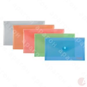 Папка-конверт на кнопке прозрачная, глянцевая. Толщина пластика - 180 мкм. Размер - 228х130 мм. Формат - DL. Цвет - ассорти.