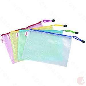 Папка на молнии полупрозрачная. Пластик уплотнен переплетом из синтетических нитей. Вместимость до 250 листов. Формат – А4. Цвет – ассорти.