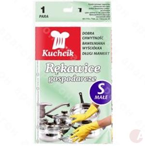 Перчатки для мытья посуды Kuchcik, размер S - предназначены для мытья посуды, уборки, садовых и прочих работ, надежно защищают Ваши руки от воздействия бытовой химии, воды, грязи. Перчатка имеет анатомический крой, благодаря которому плотно прилегает к руке, предотвращая попадание воды внтутрь, также имеет специальное тиснение на ладони, которое предотвращает выскальзывание предметов.