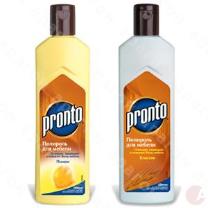 Полироль для мебели Pronto. Возвращает дереву его естественную красоту, легко удаляет с мебели следы пальцев и грязные пятна, придает ей блеск. Чистит и полирует поверхности, не оставляя разводов. Объем - 300 мл.