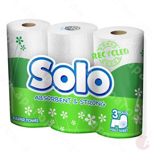 Кухонные полотенца "Solo". Обьем - 90 отрывных листов. Материал - 100 % целлюлоза. Толщина - 2 слоя. Количество - 3 рулона. Цвет - белый. Упаковка - полипропиленовая пленка.