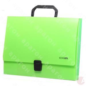 Портфель пластиковый на застежке. Одно отделение. Формат - А4. Цвет - зеленый.