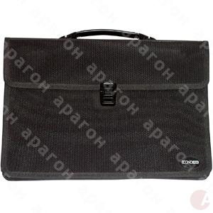 Портфель для документов на 2 отделения. Застежка-замок. Тканевая окантовка. Фактура пластика - кора. Толщина пластика - 900 мкм. Цвет - черный.