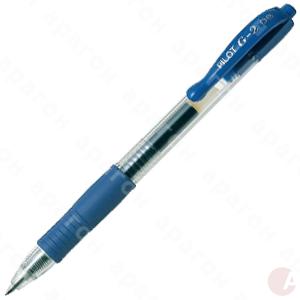 Ручка гелевая «G-2» автоматическая. Пластиковый прозрачный корпус. Удобна резиновая вставка для пальцев. Пишущий узел – 0,5 мм. Цвет корпуса соответствует цвету чернил. Цвет чернил – синий.