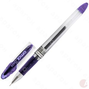Ручка гелевая "Office". Прозрачный пластиковый корпус. Металлизированный наконечник. Эргономичная вставка для пальцев. Пишущий узел - 0,5 мм. Сменный стержень О15701. Цвет чернил - фиолетовый.