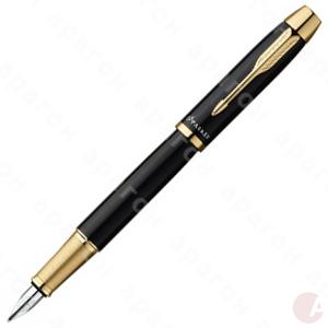 Ручка PARKER I.M. Black Gt перьевая. Корпус – ювелирная латунь, покрытая лаком. Отделка деталей – позолота 14 карат. Перо из нержавеющей стали. Комплектуется стандартными перьями: тонким или средним. Двухканальной система подачи и сбора чернил. Заправляется чернильными картриджами, а также может заправляться чернилами из флакона. В подарочной коробке.
