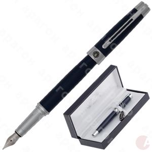 Ручка перо в футляре REGAL. Синий глянцевый корпус, глянцевые хромированные детали. Цвет чернил - черный.