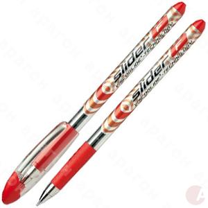 Ручка «SLIDER F» шариковая. Чернила на масляной основе, не растекаются. Оригинальный дизайн. Шарик из карбида вольфрама. Толщина линии письма F (тонкая) – 0,5 мм. Цвет чернил – красный.