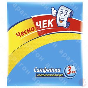 Салфетки влаговпитывающие ЧесноЧек 3 шт. Поглощают жидкости в 12 раз больше собственного "сухого" веса. Состав - целлюлоза.