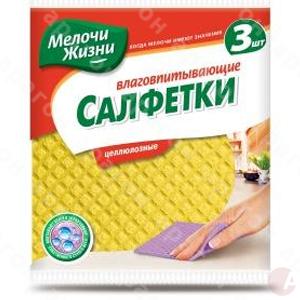 Салфетки целлюлозные губчатые "Мелочи жизни". Предназначены для впитывания влаги на поверхностях стола, плиты, кафеля, раковины, умывальника, ванны и др. Структура материала салфетки позволяет впитывать за один раз до 400мл воды даже при небольших размерах салфетки не оставляя влажных участков на различных поверхностях. Размер: 16х15,5 см. В упаковке 3 шт.