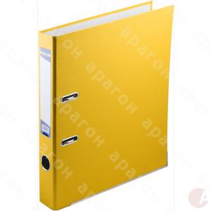 Сегрегатор 5 см желтый. Основа – цельнокроеный картон с односторонним покрытием РР. Дуговой механизм с прижимом. Кольцо для захвата. Замки фиксации закрытого положения. Металлическая окантовка по нижней кромке папки. Сменный индекс на торце. Формат - А4.