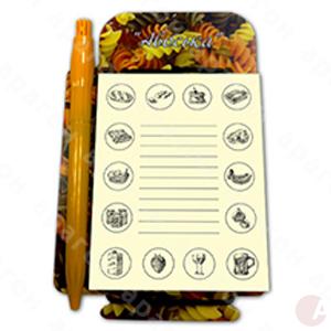 Шоп-лист «Авоська» со стикерами типа Post-it (50 листов). При помощи магнита крепится к холодильнику. Как только возникла необходимость (что-то вспомнили, закончилось в холодильнике и т.д.), делаете заметку в специальном поле (ручка входит в комплект и является неотъемлемой частью конструкции). В магазине крепите «Авоську» к ручке тележки для покупок при помощи специального эластичного зажима. Упаковка - полипропиленовый пакет. Размеры - 150х90 мм.