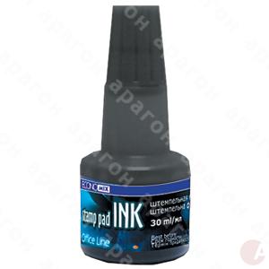 Краска штемпельная черная для дозаправки настольных штемпельных подушек. Водная основа. Для всех видов штемпельных подушек. В флаконе с дозатором 30 мл.