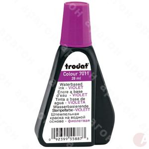 Краска штемпельная 7011 фиолетовая для заправки штемпельных подушек. Водная основа. Оттиск штампа можно наносить на все виды бумаги, кроме глянцевой. Используется со всеми типами резиновых и полимерных клише. В пластиковом флаконе с дозатором 28 мл.