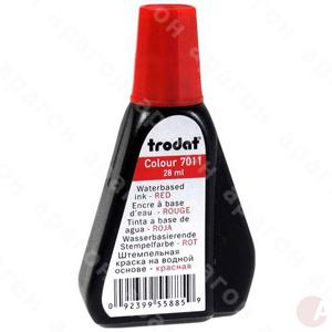 Краска штемпельная 7011 красная для заправки штемпельных подушек. Водная основа. Оттиск штампа можно наносить на все виды бумаги, кроме глянцевой. Используется со всеми типами резиновых и полимерных клише. В пластиковом флаконе с дозатором 28 мл.