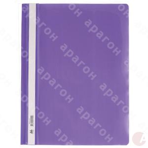 Папка-скоросшиватель без перфорации пластиковая. Формат – А4. Прозрачный верх. Сменный индекс. Толщина обложки – 120/160 мкм. Цвет - фиолетовый.