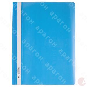 Папка-скоросшиватель без перфорации пластиковая. Формат – А4. Прозрачный верх. Сменный индекс. Толщина обложки – 120/160 мкм. Цвет - голубой.