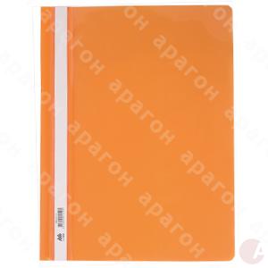Папка-скоросшиватель без перфорации пластиковая. Формат – А4. Прозрачный верх. Сменный индекс. Толщина обложки – 120/160 мкм. Цвет - оранжевый.