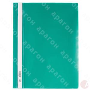 Папка-скоросшиватель без перфорации пластиковая. Формат – А4. Прозрачный верх. Сменный индекс. Толщина обложки – 120/160 мкм. Цвет - зеленый.