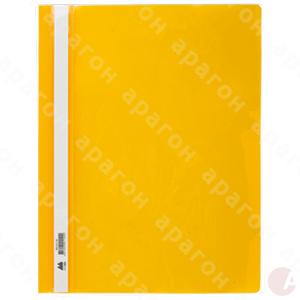Папка-скоросшиватель без перфорации пластиковая. Формат – А4. Прозрачный верх. Сменный индекс. Толщина обложки – 120/160 мкм. Цвет - желтый.