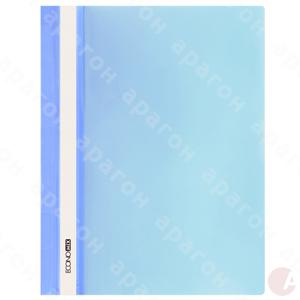 Папка-скоросшиватель без перфорации пластиковая. Формат – А4. Прозрачный верх. Толщина обложки – 120/160 мкм. Фактура – глянец. Цвет - голубой.