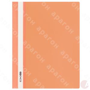 Папка-скоросшиватель без перфорации пластиковая. Формат – А4. Прозрачный верх. Толщина обложки – 120/160 мкм. Фактура – глянец. Цвет – оранжевый.